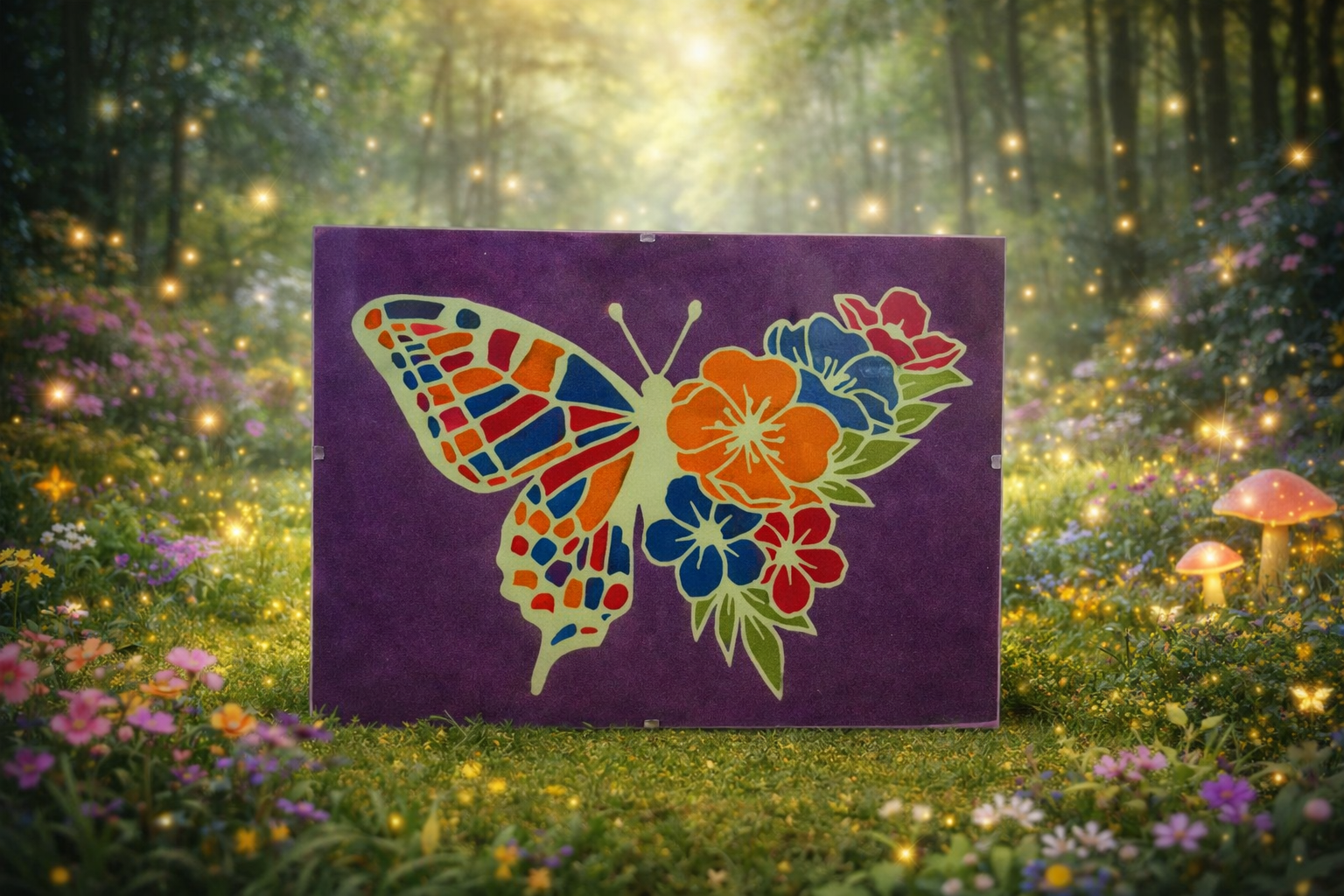 | Dessin et taille | Mandala arc en ciel 18x24cm, Panda 13x18cm, Home sweet home 13x18cm, Papillon fleurs phosphorescent 18x24cm, Girafe 21×29,7cm |