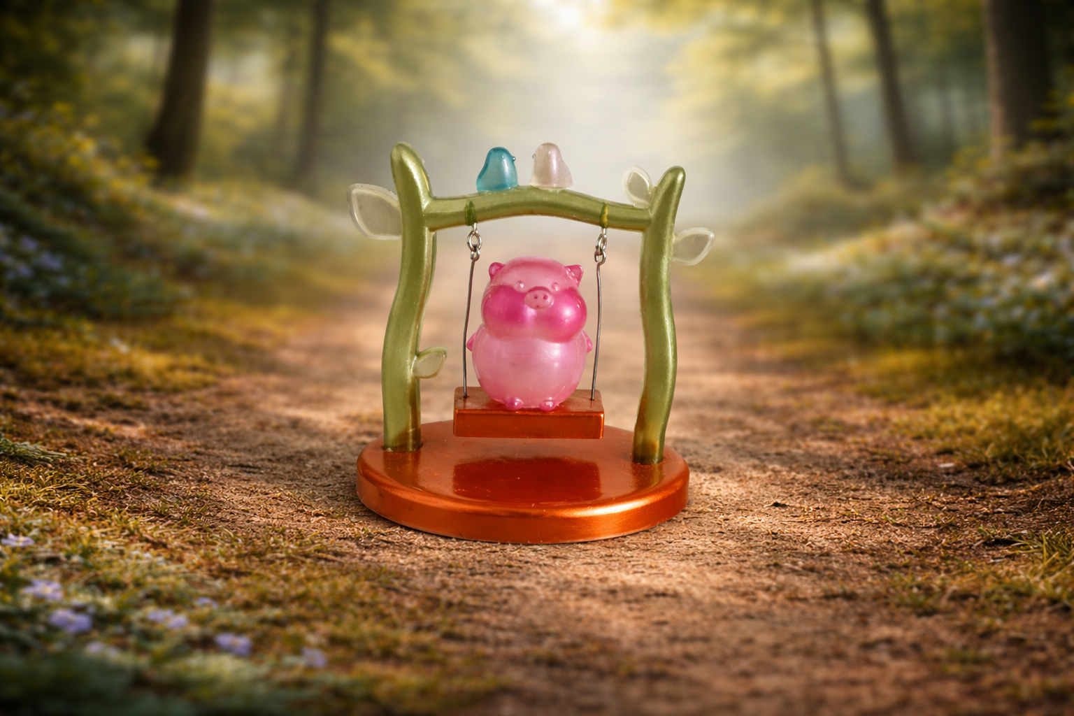 Cochon sur une balançoire en résine
