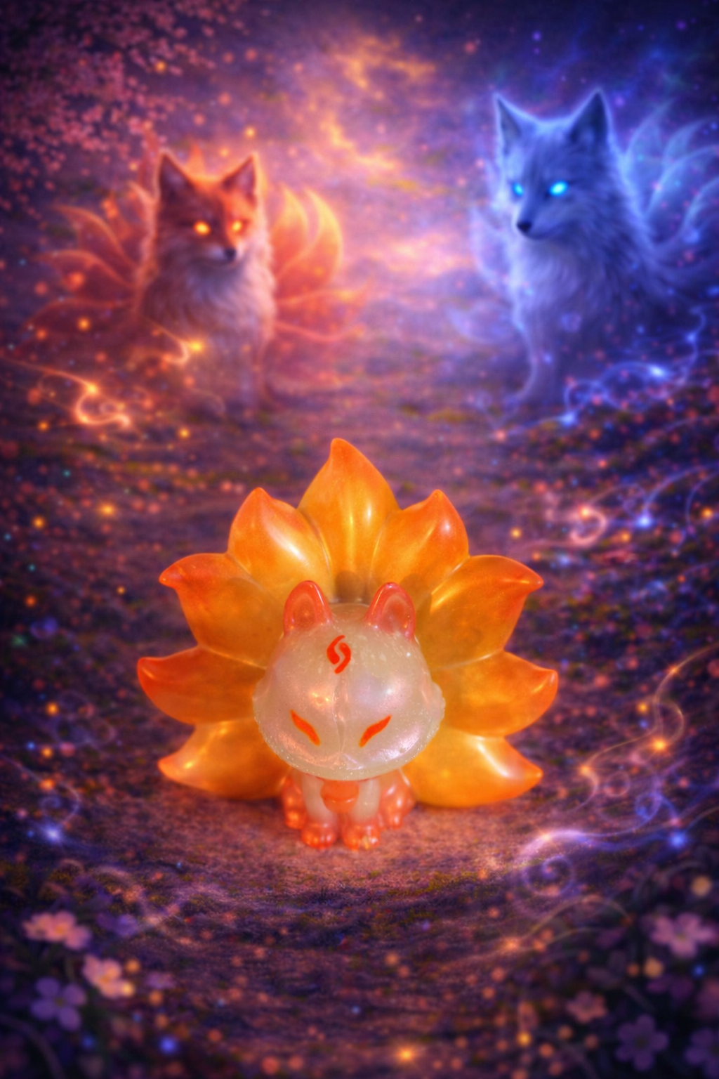 Renard à neuf queues en résine